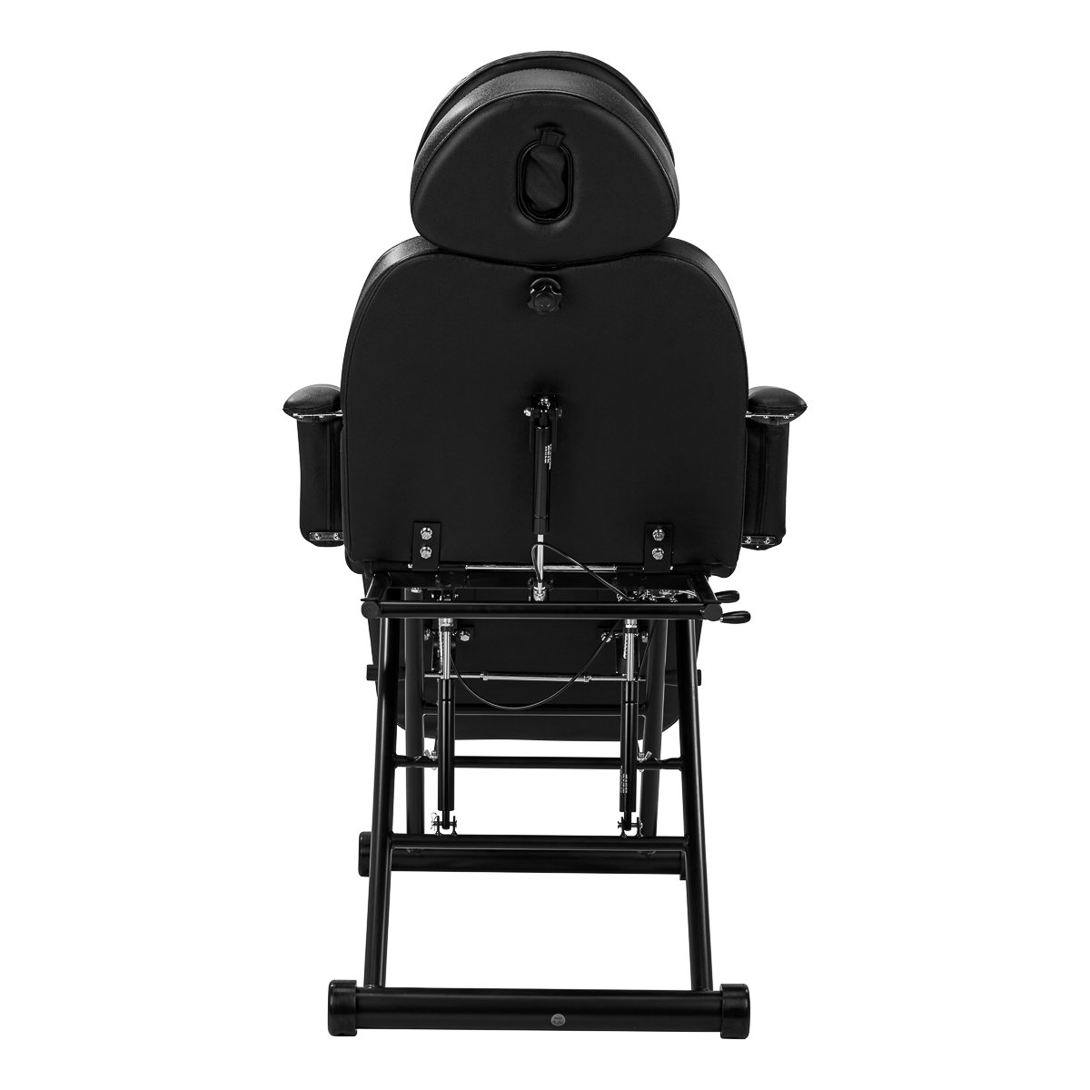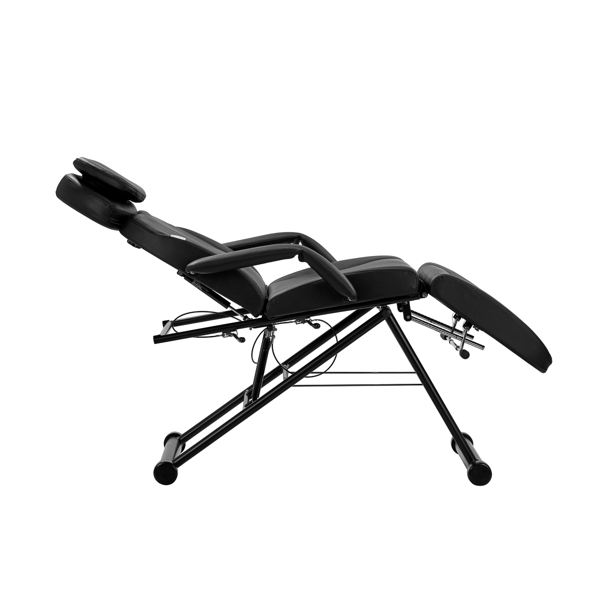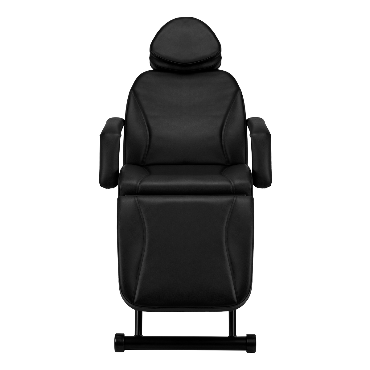 The base of the chair has a fixed height, so the seat is at a constant level, which should ensure comfort during use. The solid metal frame in shades of black provide the necessary stability during use. The headrest, which extends by about 15 cm, provides excellent head support, regardless of the customer's height. This allows you to freely perform various types of treatments, including cosmetology, physiotherapy and tattooing.