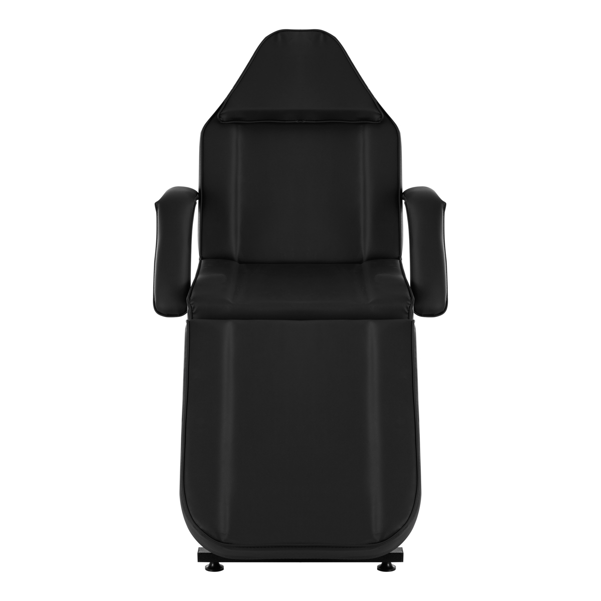 The hole in the headrest, hidden under a properly profiled pillow, makes the chair perfect for both face and back treatments. Stable armrests guarantee the user adequate support. These elements, which are divided in half, are movable, so they fit well when changing the position of the backrest, and additionally they can be easily removed.