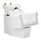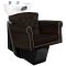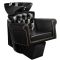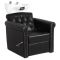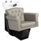 The white ceramic washbasin bowl of appropriate depth prevents excessive splashing of water or specialized products used during the treatment. This allows for highly efficient performance of a wide range of services. The angle of the bowl can be adjusted, making it easy to adapt to individual needs and the treatment being performed. The high-quality material used makes the washbasin durable, resistant to discoloration and scratches, and easy to keep clean. The contoured collar and inclined backrest provide support and comfort when washing the hair, and thanks to the comfortable black plastic overlay, the customer will not feel the unpleasantness of the cold ceramic surface.