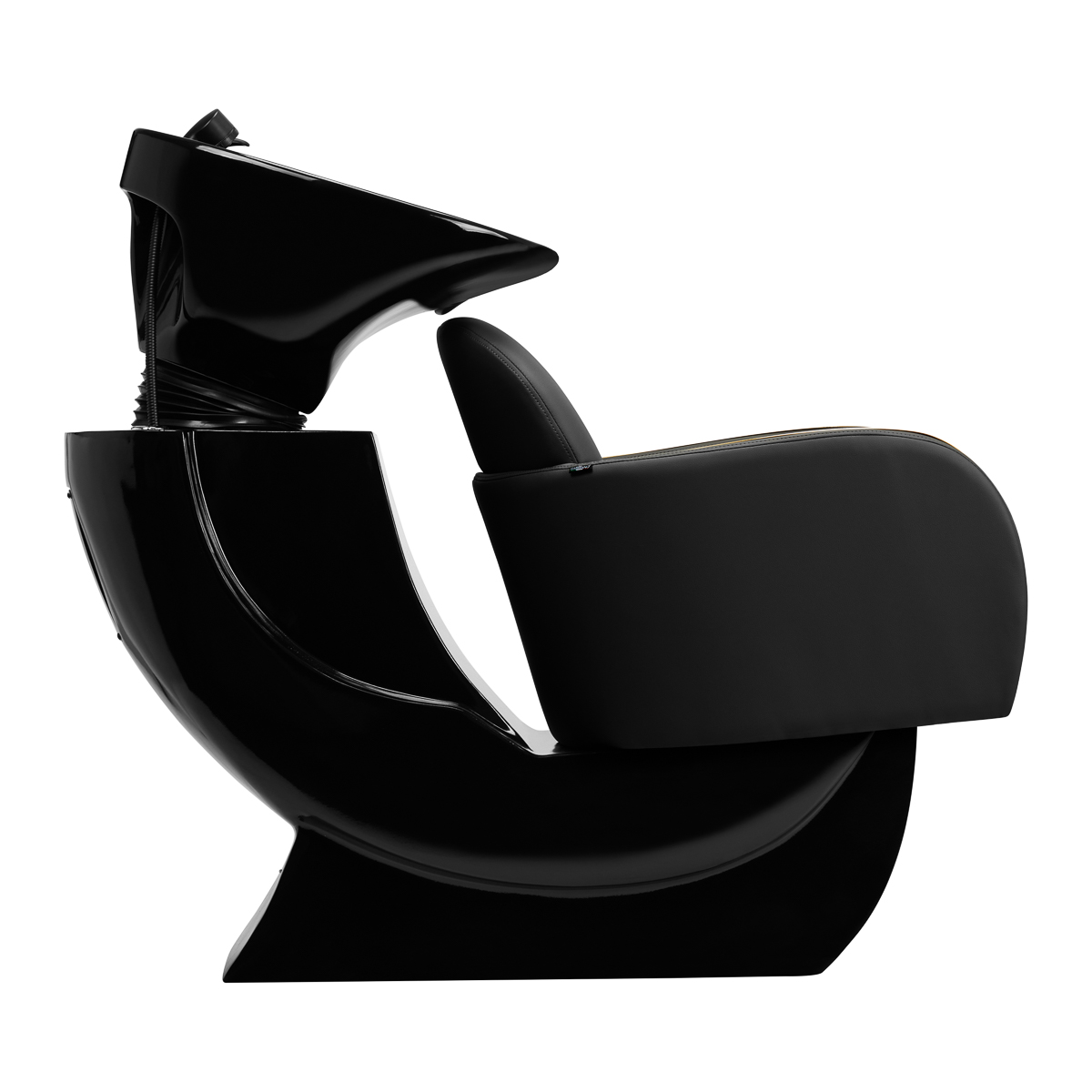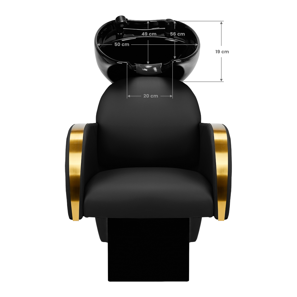A properly profiled chair filled with durable foam ensures high comfort of use and elegant armrests allow for the correct positioning of the client's shoulders. The backrest is placed at an optimal angle to allow you to take the right position and promote excellent spine support. Coverage in shades of black and decorative metal surfaces lacquered in gold colors give it a timeless elegance and in addition guarantees long-term durability and ease of cleaning. Distinctive hair wash unit classic finish makes it look great in almost any space. The set includes complete fittings in shades of black, including a faucet, shower head and dedicated hoses to provide a complete set of tools for work.