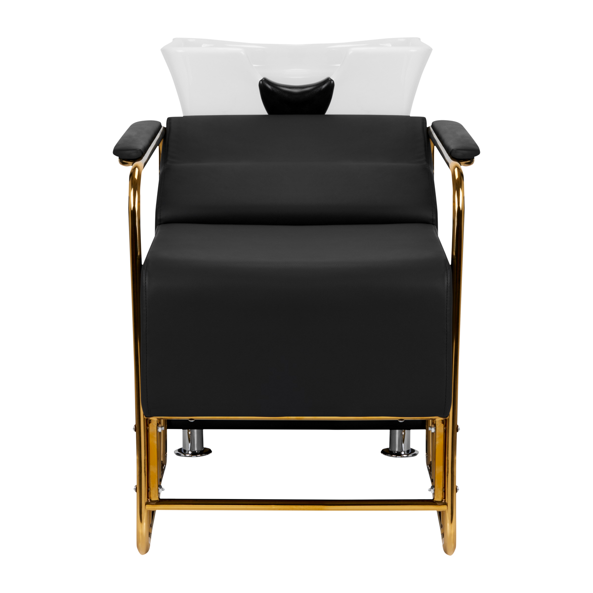 The modern Gabbiano hairdressing car wash combines functionality with Italian elegance. The car wash is made of the highest quality materials and perfectly finished. We know how important the client's comfort is during treatments, which is why the special design provides the client with a solid head support while washing. The soft and extremely comfortable seat is covered with high-quality gray eco-leather. The car wash has a white ceramic bowl and golden armrests. The perfect piece of furniture for modern interiors.
