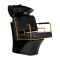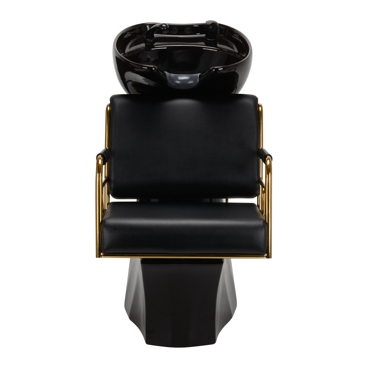 The modern Gabbiano hairdressing car wash combines functionality with Italian elegance. The car wash is made of the highest quality materials and perfectly finished. We know how important the client's comfort is during treatments, which is why the special design provides the client with a solid head support while washing. The soft and extremely comfortable seat is covered with high-quality black eco-leather. The car wash has a white ceramic bowl and golden armrests. The perfect piece of furniture for modern interiors.