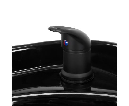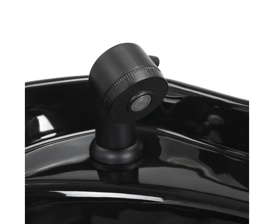 Depth of the ceramic basin bowl in shades of black, prevents excessive splashing of water and products used during the treatment. This allows to comfortable and effective performing a wide range of hairdressing services. Mobility of bowl enables easy fit of inclination angle to individual needs. The material used makes the basin durable, resistant to discoloration and scratches, and very easy to maintain cleaness. A properly profiled collar ensures optimal support and comfort when washing your hair and a comfortable cover from plastic in shades of black makes the customer will not feel any discomfort related to the coldness of the ceramic surface.