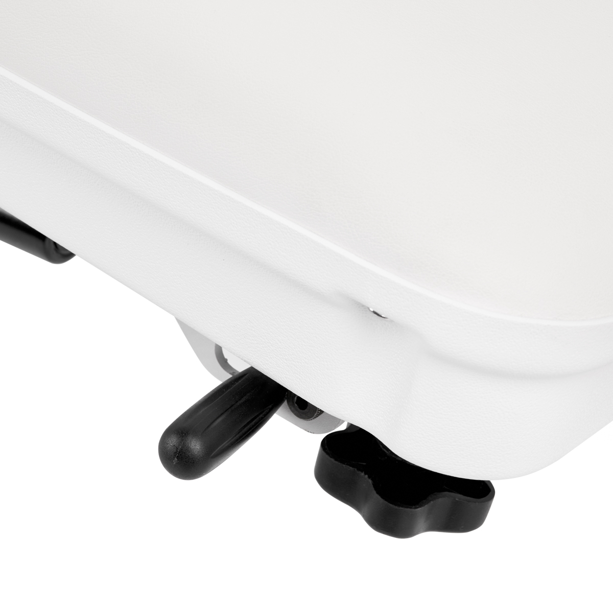 The appropriate way of profiling gives the chair an ergonomic shape and allows for comfortable positioning of the body in it. The equipment can be unfolded to the reclining position, and thanks to the hole in the headrest hidden under the pillow, it is also perfect for body, back or massage treatments. Stable armrests provide comfortable support for the hands during treatments. The possibility of moving them backward makes it easier to take a seat.
