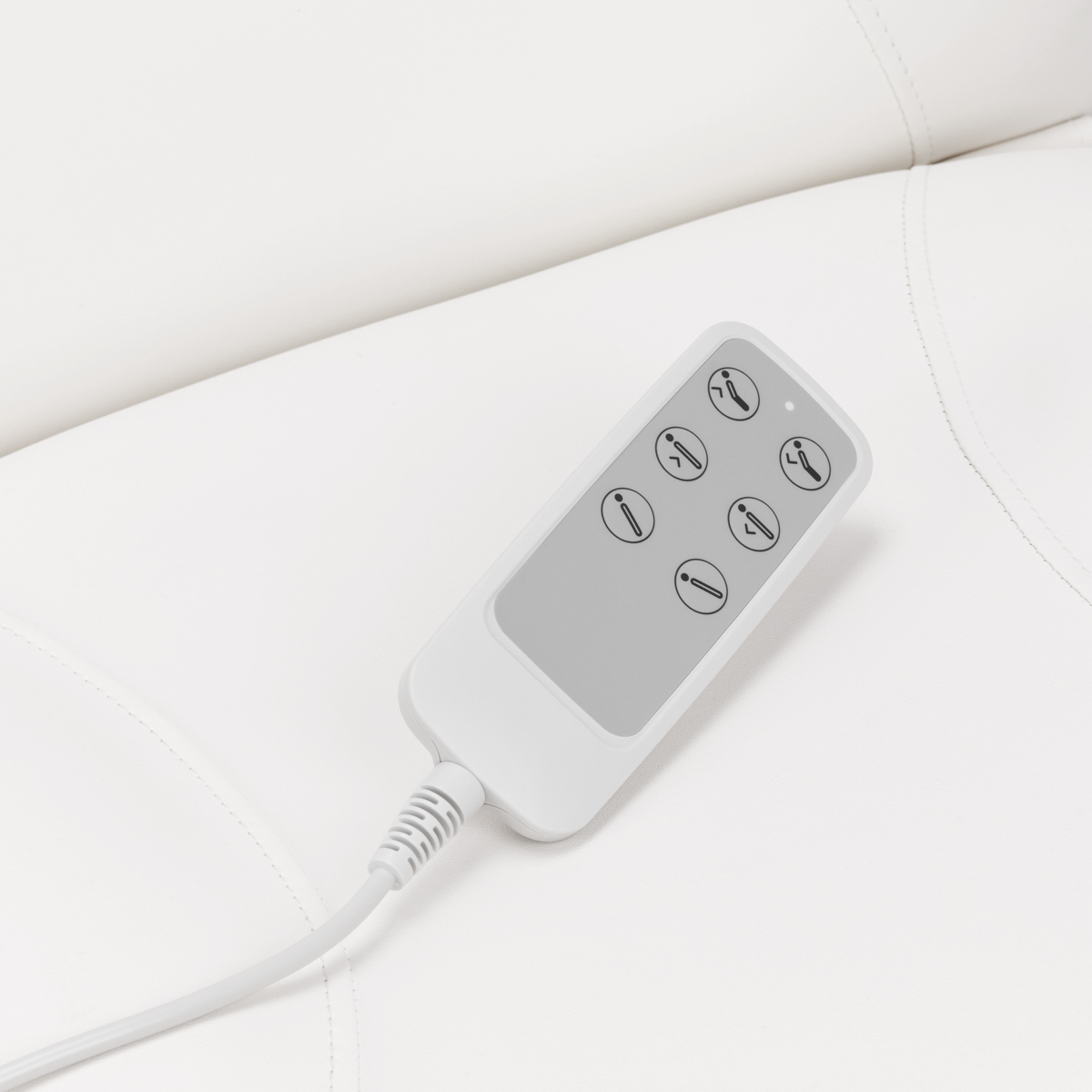 Using an intuitive remote control, the chair can be smoothly adjusted in 3 planes – it has adjustable height, backrest and cradle. The seat can be adjusted in height from 56 cm to 81 cm, and when fully extended, the chair reaches a length of 1,9 meters. These dimensions make it easy to use the equipment for people of different heights and allows it to be adapted to the individual needs of both the client and the person performing the procedure. A handle located on the right side of the seat is used to conveniently hang up the remote control so that it does not interfere during treatments.