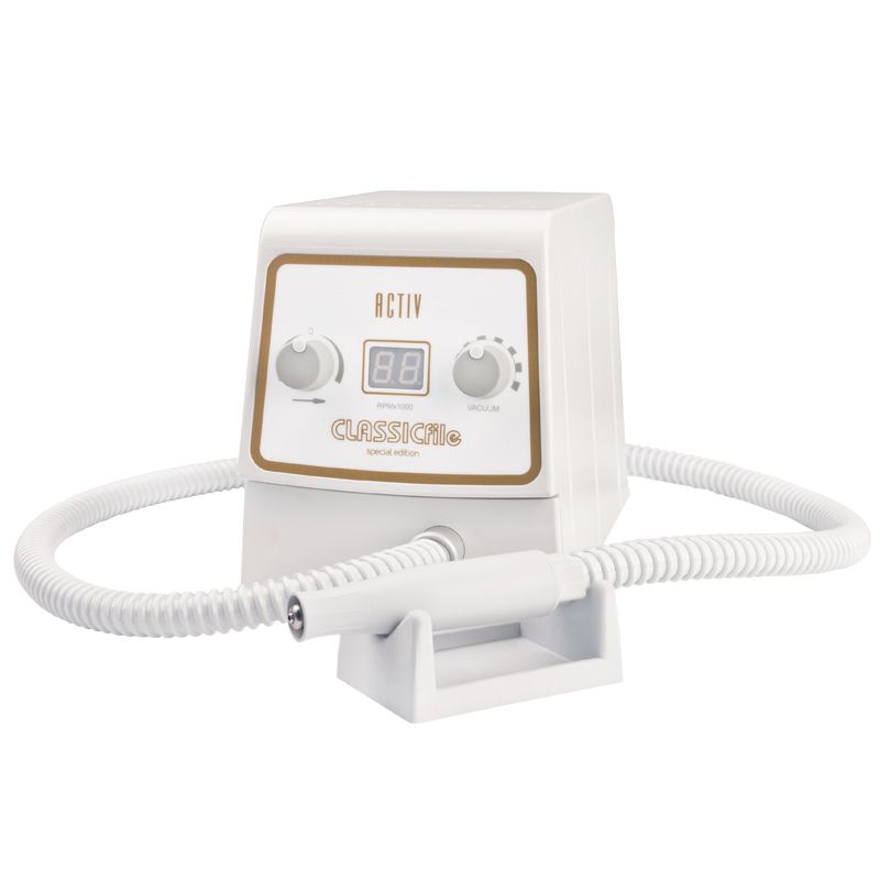 This nail drill machine with absorber is a perfect solution in terms of hygiene and health. It protects the lungs from inhaling all the abrasive material. The absorbed dust will not circulate around the treatment room. This ensures it will not settle on furniture and objects on which bacteria and viruses colonizing the epidermis and nails can multiply.