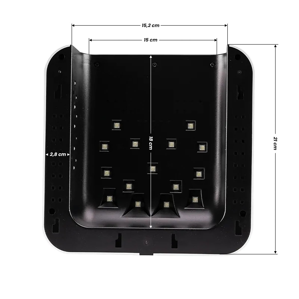 the latest generation, professional uv / led lamp that quickly and evenly cures all gels, hybrid varnishes and other light-curing preparations thanks to the use of technology dual led. emits white light that does not tire the eyesight. the n9 lamp has an energy-saving high-power light source and a dual wavelength of 365nm and 405nm. Moreover, 33 LEDs give a total maximum power of 60w! the lamp has a built-in motion sensor, a timer of 30, 60 and 99 seconds, and after activating the sensor, it lights continuously for 99 seconds. 99 seconds "low heat mode" is a mode in which the lamp power gradually increases every 30 seconds. It reduces the burning sensation during the application of builder gels. large electronic display facilitates time control.