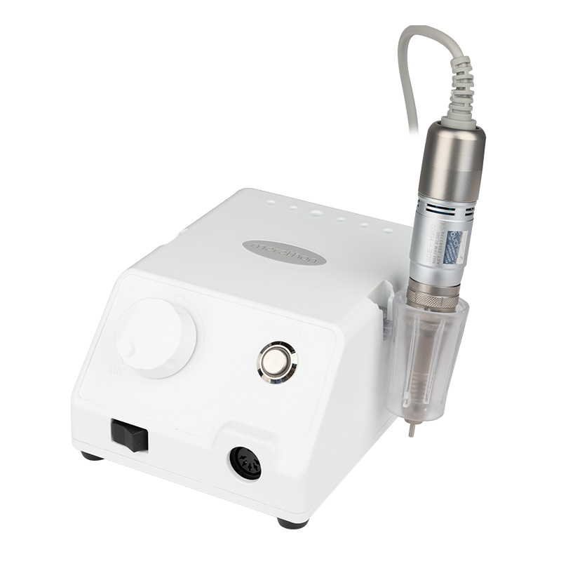 The Marathon Escort III nail drill machine is the latest version after the previously known version of Escort Pro II. It is characterized by the latest technological applications and the unique H200 handpiece. You can expect quiet operation and no disturbing vibrations. The speed mechanism is controlled by a knob, and the number of revolutions per minute is from 0 to 30 thousand. The system is automatically protected against overload.