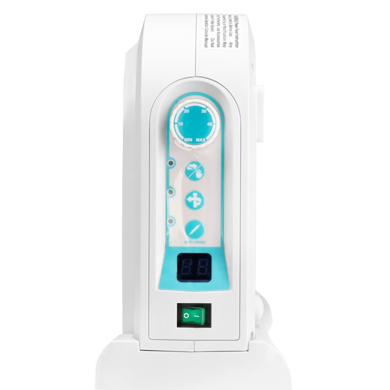 The panel located on the base has all the amenities. On / off switch lights up in green color (you will never forget to turn it off!). A knob that allows you to smoothly adjust the speed of the handpiece. Change of rotation to left or right. AUTO CRUISE system offers the possibility to set a constant speed while using the foot / knee drive. Self-diagnosis function allows overseeing proper operation with locating the faulty area to be showed with the appropriate code on the digital display. Handpiece stand is included.