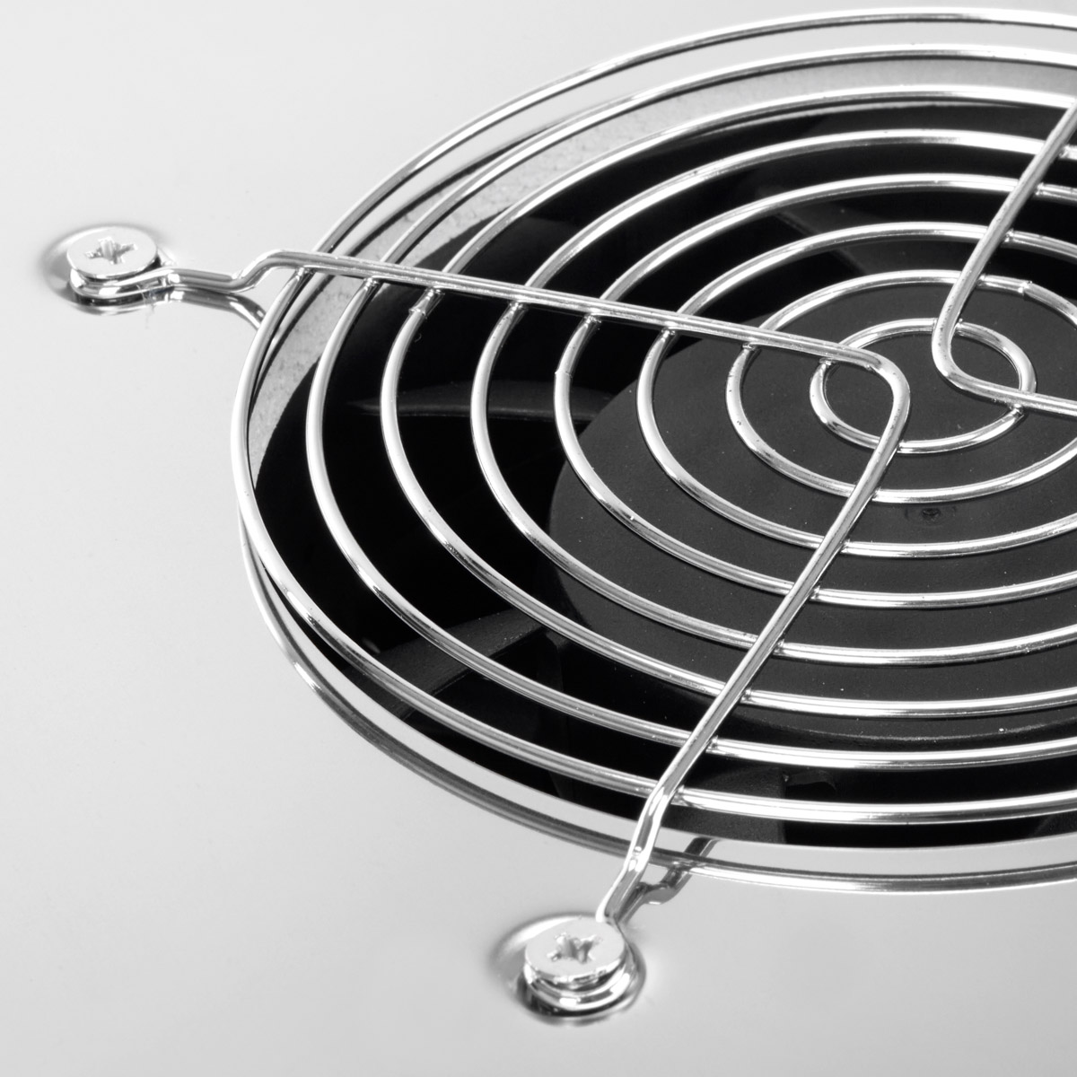 Chrome-plated elements make the absorber look extremely elegant, and at the same time it is extremely functional. The simple structure and metal grille give it a futuristic look, which can attract the eye and become a distinctive element of the beauty salon.