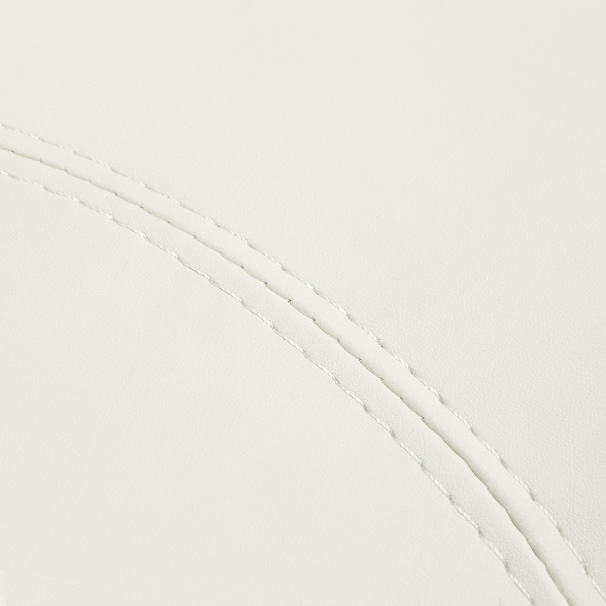 The five-star, properly designed base makes the stool stable, even during intensive work. Additionally, it is equipped with wheels, which makes it easier to move. The chair is stable and durable. The upholstery is made of imitation leather in shades of white; thanks to the use of such material, it is resistant to moisture and easy to clean.