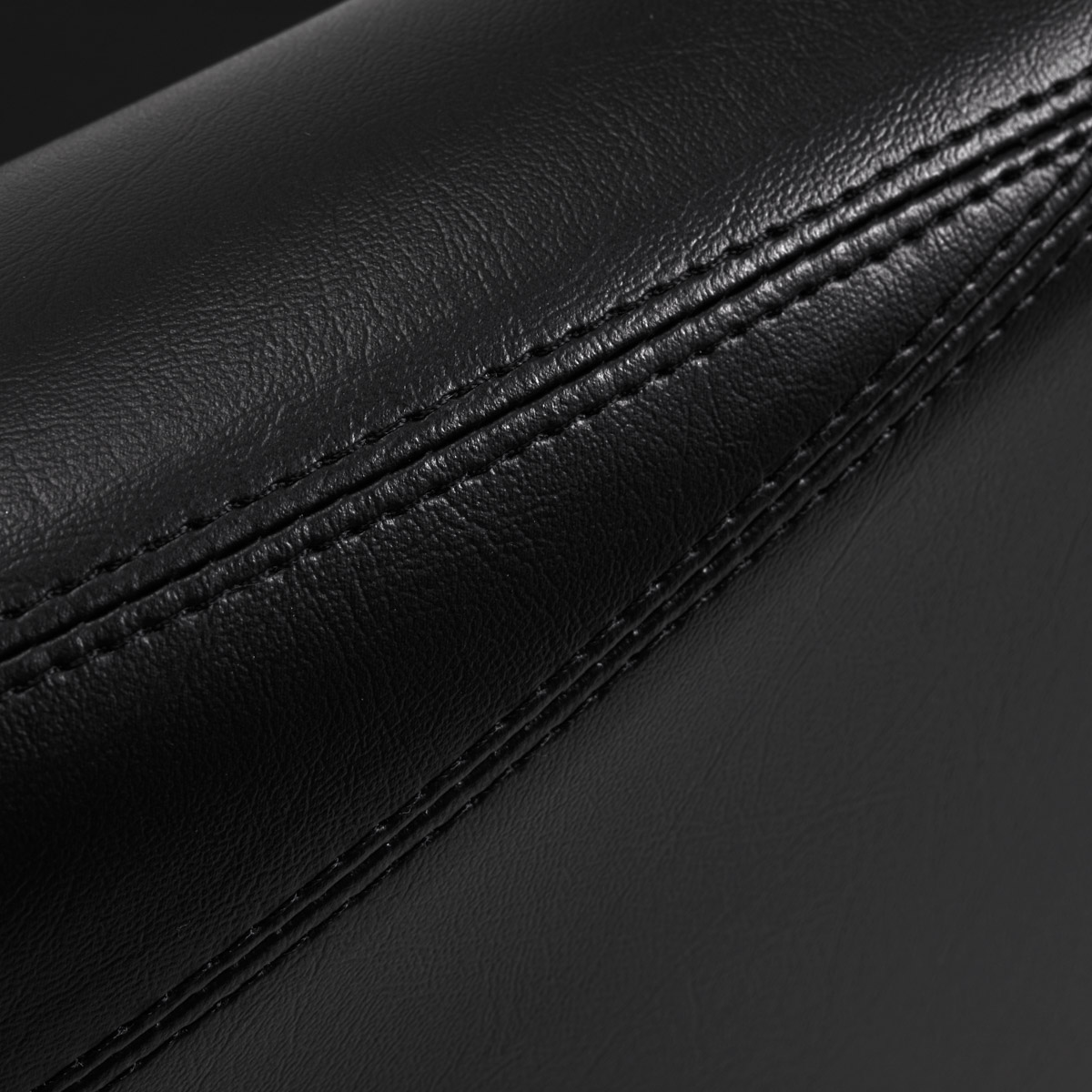 The chair is filled with foam, which is durable and does not deform, ensuring comfortable use for a long time. The upholstery is made of pleasant-to-the-touch imitation leather with a specific structure. Thanks to the use of such material, the equipment is resistant to moisture, durable and easy to clean. The covering in shades of black and decorative elements in silver hues give it an expression of timeless elegance. Its distinctive classic finish makes it look great in almost any space.