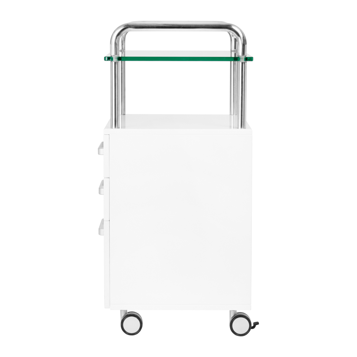 A high-quality podiatry helper is a functional cosmetic piece of furniture on wheels. Thanks to your mobility, you can transport it to other treatment rooms. The assistant has a glass worktop, three drawers for tools, accessories and a shelf for a podiatry milling machine or other device.