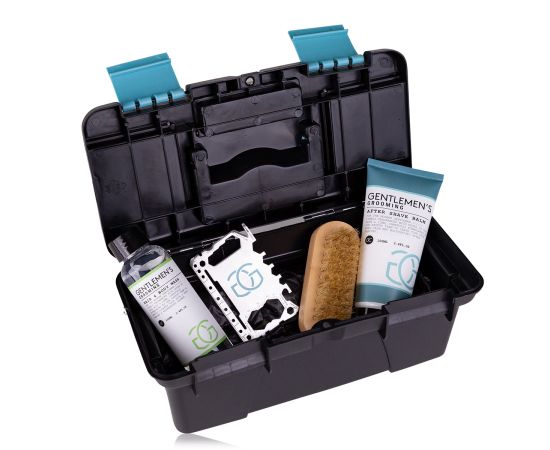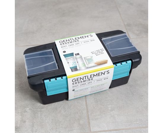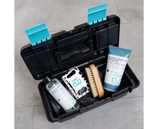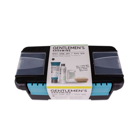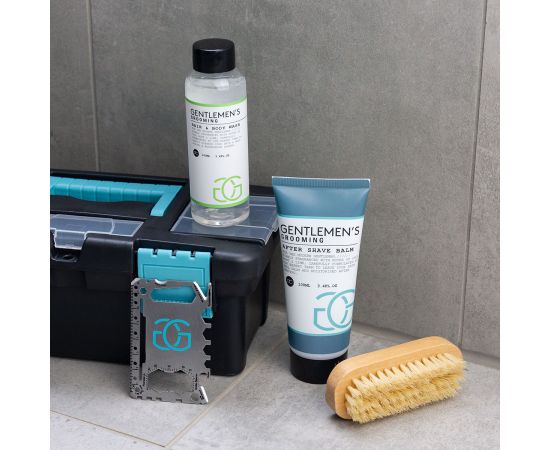 Σετ ανδρικής περιποίησης με αφρόλουτρο, βούρτσα, βάλσαμο για μετά το ξύρισμα, multi-tool, Bath set GENTLEMEN'S GROOMING in tool box , σετ δώρο Πάσχα
