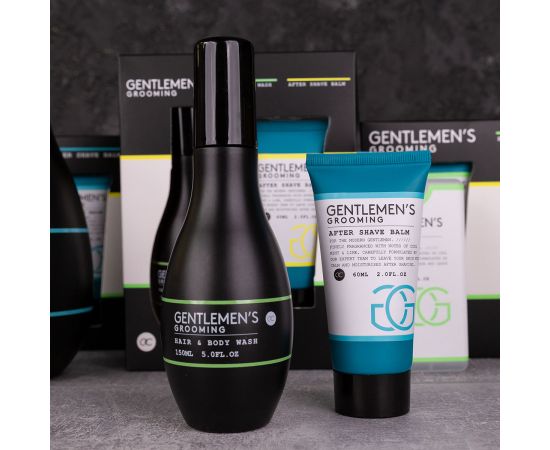 Σετ περιποίησησ ανδρών, αφρόλουτρο, βάλσαμο για μετά το ξύρισμα, Bath set GENTLEMEN'S GROOMING in paper gift box, 150ml hair & body wash, 60ml after shave balm, fragrance: Cool Mint & Lime, col. black/white/mint, σετ δώρο Πάσχα