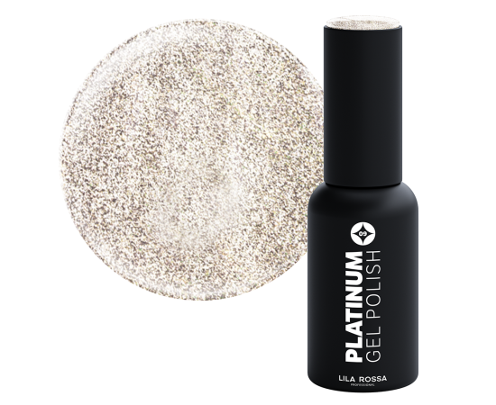 Το ημιμόνιμο βερνίκι νυχιών με πυκνή σύσταση εμπλουτισμένο με μεταλλικό glitter προσφέρει πλήρη κάλυψη σε φυσικά ή τεχνικά νύχια. Η συλλογή Platinum έχει και έντονη λάμψη και μπορεί να εφαρμοστεί πάνω από οποιαδήποτε βάση, τζελ χτισίματος ή ακρυλικό.