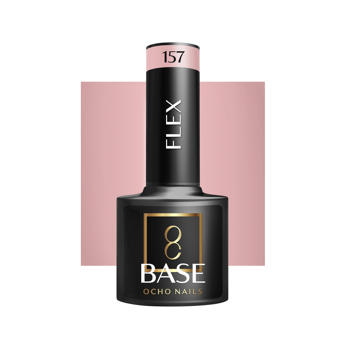 The self-leveling rubber OCHO NAILS FLEX BASE is an excellent choice for thin and brittle nails. It perfectly blends with the natural plate, leveling out any of its imperfections and giving the styling a smooth surface. Appropriate, quite thick consistency facilitates precise application of the product and ensures that the product does not spill on the cuticles, while it can be easily formed on the nail plate. Its formula allows nail extensions of up to 10 mm, guaranteeing durability equal to that of gel manicure. The properties of the rubber mean that the base works with the nail all the time, so that even after setting it remains flexible and resilient. As a result, it cushions the nail during any injuries, protecting against breakage or deformation. The opaque finish and delicate color allow it to enhance the shades of nail polishes applied later. The OCHO NAILS FLEX BASE is available in 13 colors, which allow you to create delicate, everyday styles in a quick and easy way – just protect the base with a top and an aesthetic manicure is ready!