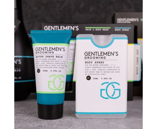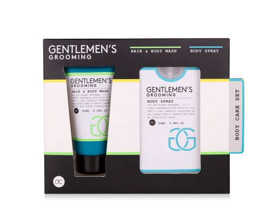 Σετ περιποίησησ ανδρών, αφρόλουτρο, spray σώματος, Bath set GENTLEMEN'S GROOMING in paper gift box, 60ml hair & body wash, 25ml body spray, fragrance: Cool Mint & Lime, col. black/white/mint, σετ δωρο πάσχα