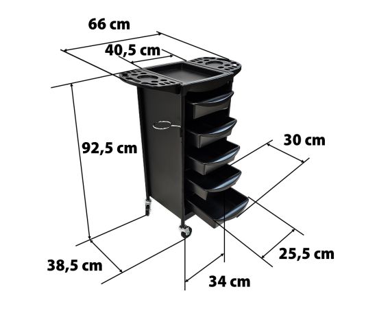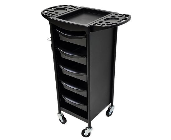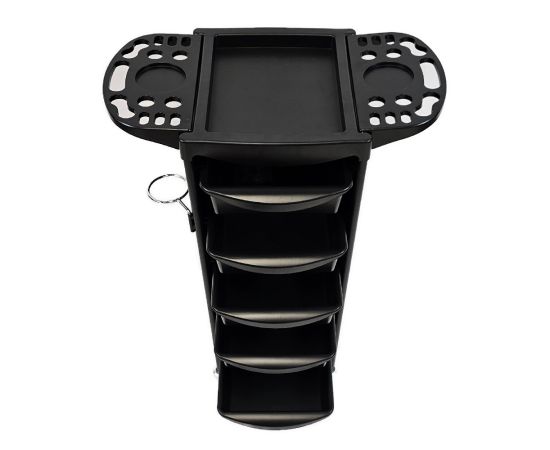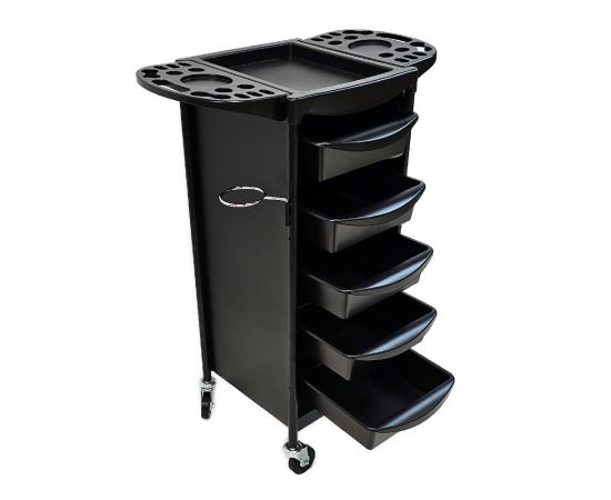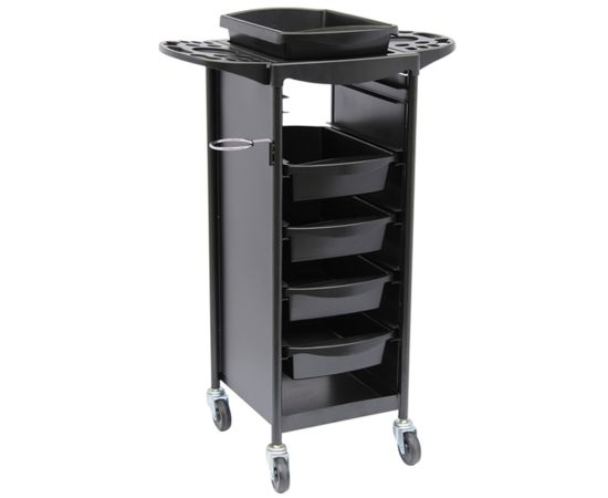Είναι κινητό, πολύ ευρύχωρο και μπορεί να χρησιμοποιηθεί τόσο σε κουρεία όσο και σε κομμωτήρια. Είναι εξοπλισμένο με πολλαπλούς αποθηκευτικούς χώρους και μεταλλικά αξεσουάρ.