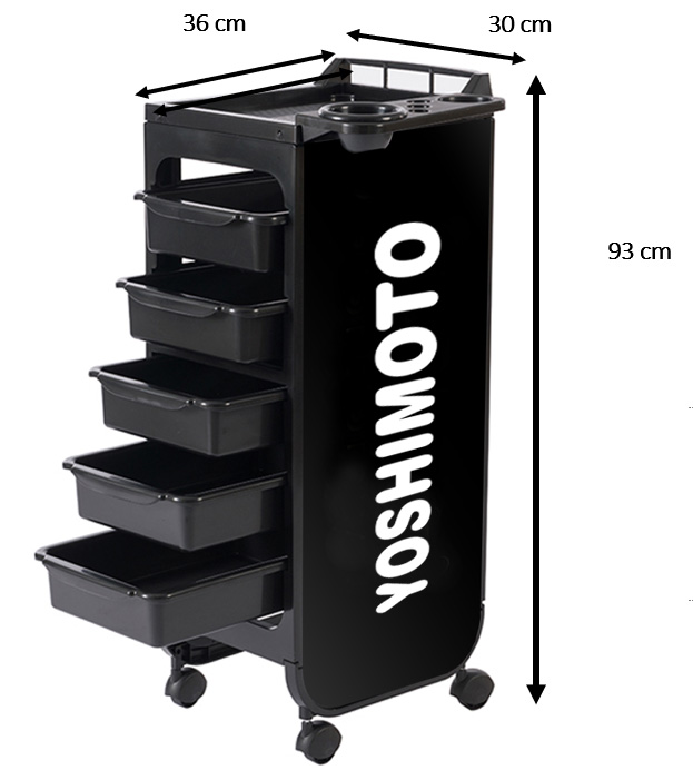 Είναι κινητό, πολύ ευρύχωρο και μπορεί να χρησιμοποιηθεί τόσο σε κουρεία όσο και σε κομμωτήρια. Είναι εξοπλισμένο με πολλαπλούς αποθηκευτικούς χώρους.